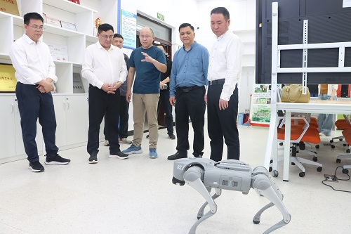 幸小涛先后深入人工智能学院党建活动室、教学课堂、实训室、技能大师工作室、办学成果展厅等察看学院党建基本情况和教学条件,观摩课堂教学和办学成果,并主持召开学院干部教师座谈会,听取学院和教师工作汇报。
