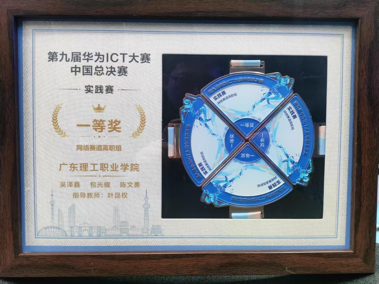 3月8日,第九届华为ICT大赛中国区总决赛华为广东区域总部举行。学校人工智能学院学生吴泽鑫、陈文勇以及工程技术学院学生包光耀获网络赛道高职组一等奖,成功晋级全球总决赛,人工智能学院叶昆权任指导教师。这是学校参加该赛事以来取得的最好成绩。