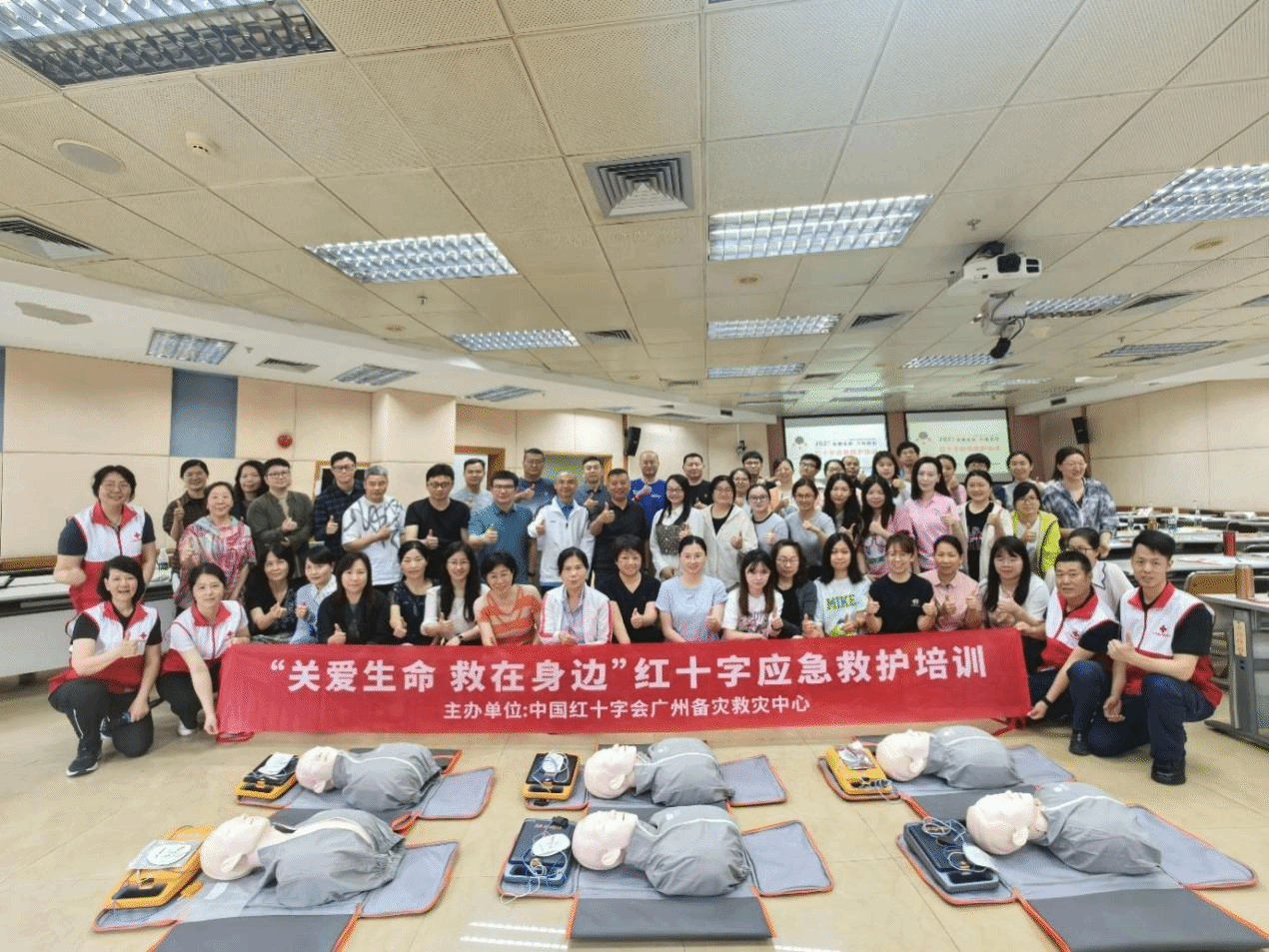 4月19日,学校举办以“关爱生命,救在身边”为主题的红十字应急救护培训。50名教职工参与并均获红十字救护员证书。