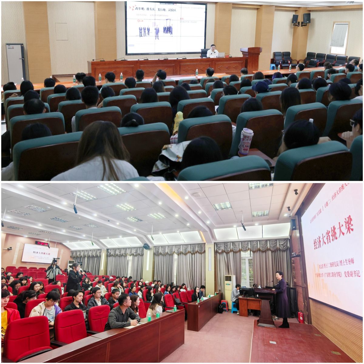 “广东既是经济大省,更是创新热土、开放高地。身处广东的我们,在新征程上大有可为,也必将大有作为。”党委副书记、校长刘文清系统解读了广东省作为经济大省,在习近平经济思想指引下经济社会高质量发展取得的开创性进展、突破性变革和历史性成就。她号召广大青年学子深入理解广东改革发展的实践探索,把握新时代发展的历史机遇,勤奋学习、奋发进取,在广东推进中国式现代化建设中挑大梁、作贡献。