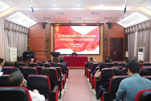 12月12日,学校党委副书记、校长刘文清以《深入学习贯彻党的二十届四中全会精神,科学谋划学校“十五五”发展新篇章》为题,为分管部门、联系学院党员讲授党课。党政办公室、学分银行管理中心、社会工作学院和健康产业学院等8个部门、单位共35名教职工党员参加。