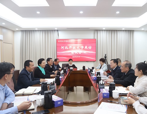 刘文清代表学校对河北开放大学来访表示欢迎,并简要介绍了学校办学情况和特色。她表示,学校树立和践行正确政绩观,围绕服务全民终身学习,深入实施“一体两翼三化”战略,在“十五五”规划谋划、服务国家重大战略、老年教育与社区教育创新、数字化建设、学分银行建设等方面成果显著。学校近期上线了广东全民终身学习平台,平台整合教育、人社、文旅等多部门优质课程资源,向公众免费开放,进一步完善了“泛在可及、普惠优质”的终身教育服务体系,助力学习型社会建设。她表示,河北开放大学在推动终身教育立法、服务京津冀协同发展等方面经验丰富、成果突出,值得学校学习借鉴,希望两校加强交流、互学互鉴,共同推动开放教育事业提质增效。