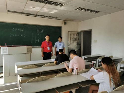 10月19日上午,学校举行2019年第二期高职扩招专项行动招生考试。考试主考、学校副校长陈显强深入考试现场检查指导,教务处有关负责同志也分别在各考点督考。