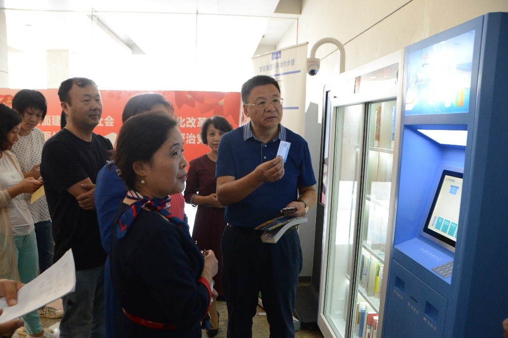 11月13日下午,学校在广州校本部1号楼1楼大厅举行微型智慧图书馆借阅柜启用仪式。学校副校长孙平出席,有关职能部门负责人及教职工读者代表参加。