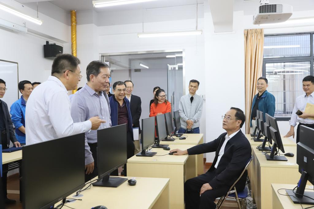 省政协常委、科教卫体委员会主任郭俊用“走访、感谢、请求、学习、体验”简要介绍了来访目的:一是走访省政协常委、副校长孙平;二是参观了解我校办学特色和基本情况;三是了解孙平常委履职的基本诉求。校党委书记罗海鸥对郭俊主任一行到来表示热烈欢迎,他简要介绍了我校的发展历程和基本情况,详细阐述了学校在抓引培强师资、服务全民终身教育、全面加强党建和思政工作和“以美育人、以文化人”的校园文化建设等方面付出的努力和取得的成效,使来访的各位政协委员和领导对这所扎根南粤、惠及百姓的新型大学有了更深入的了解,也被我校教师坚守高等教育塔底静默奉献的精神深深感动。郭俊主任一行还参观了广东老年大学,实地考察了舞蹈室、歌唱室、钢琴室、书画室等课室与教学设施设备。孙平副校长介绍了广东老年大学的基本情况和办学特色,以及当前正在筹备的广东老年大学理事会、艺术团、志愿者服务队、公益讲座等有关工作的进展情况。各位委员和领导对学校的办学理念和办学成绩给予充分肯定,并纷纷对学校今后的发展建言献策。最后,郭俊主任以“数次门前过,今入开大门;业绩展辉煌,愿景暖人心”作为调研总结,对我校的建设和发展成果表示充分赞赏。