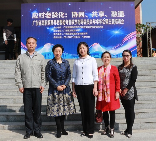 12月1日,由学校承办的广东省高职教育养老服务专业教学指导委员会2019年学术年会暨主题培训会在学校中山校区学术报告厅举行。省卫生健康委副巡视员纪乐勤,学校校长、省养老教指委主任委员刘文清,副校长孙平出席会议。北京社会管理职业学院老年福祉学院首任院长杨根来教授应邀莅会作专题报告。省养老教指委全体成员,教指委立项项目负责人,省社会工作专业教学资源库子项目负责人及健康养老领域行业企业代表等共60多人参加会议。会议由孙平副校长主持。