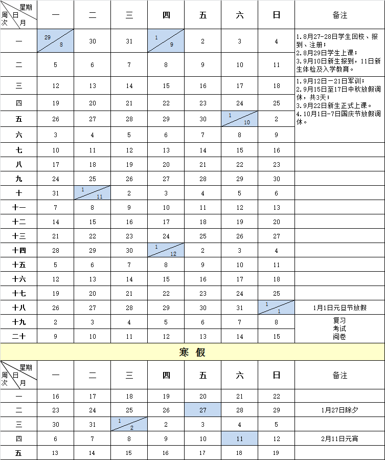 广东理工职业学院2016—2017学年度第一学期校历
