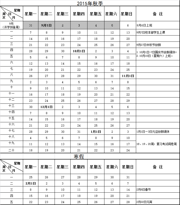 广东开放大学2015年秋季校历