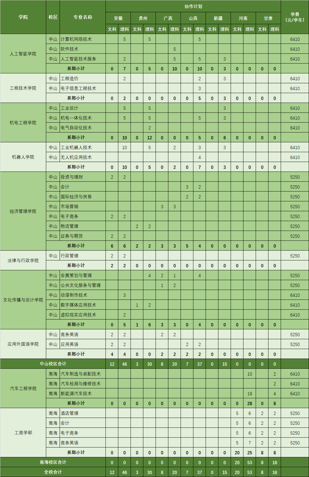 备注:此表仅供参考,具体招生专业、招生计划、收费等,详见各省教育考试院公布。