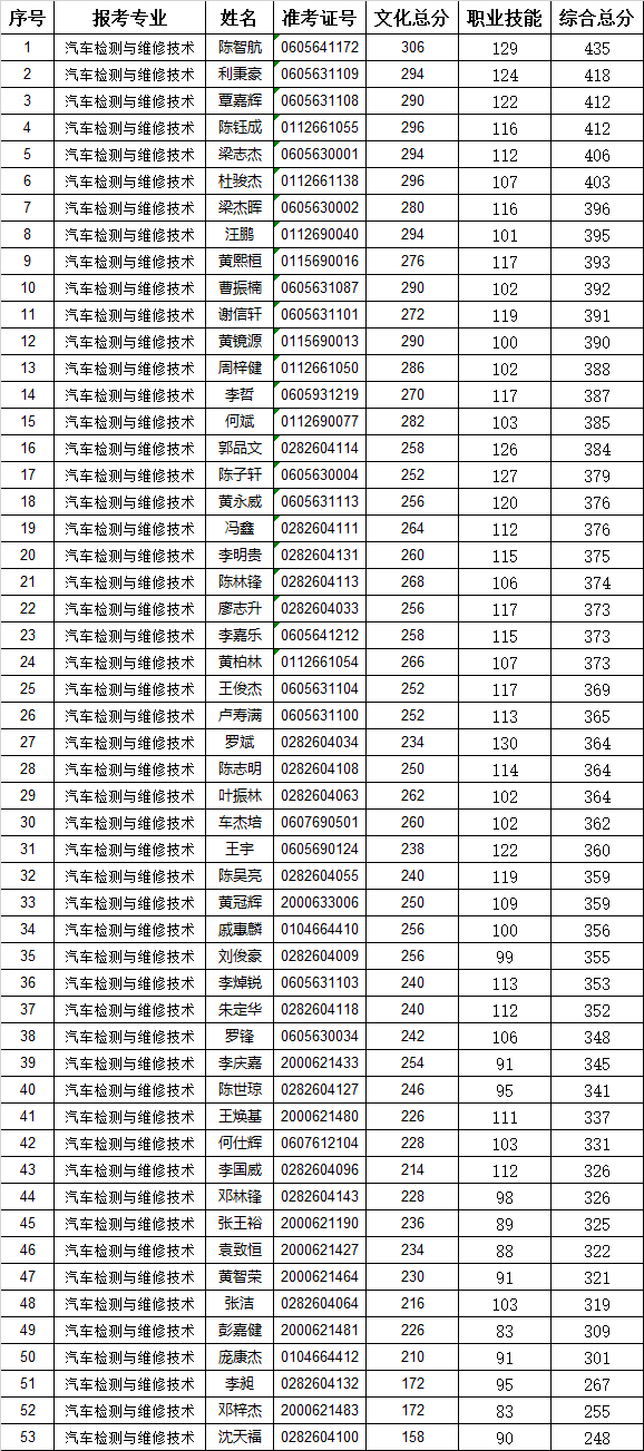 我校2019年自主招生考试已于6月14日完成,现将考生考试成绩进行发布,具体各专业成绩公布如下: